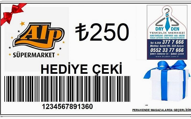Her ay bizi tercih eden müşterilerimiz arasında kura çekimi yapıp şanslı müşterimize Alp Süpermarket'ten 250 TL değerinde hediye çeki takdim ediyoruz
